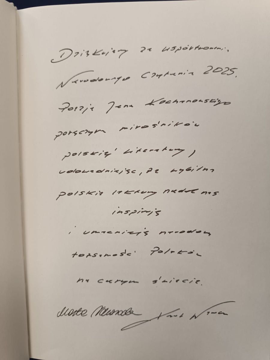 . Otrzymaliśmy również książkę: "Poezje" Jana Kochanowskiego, która została specjalnie na tę okoliczność wydana.