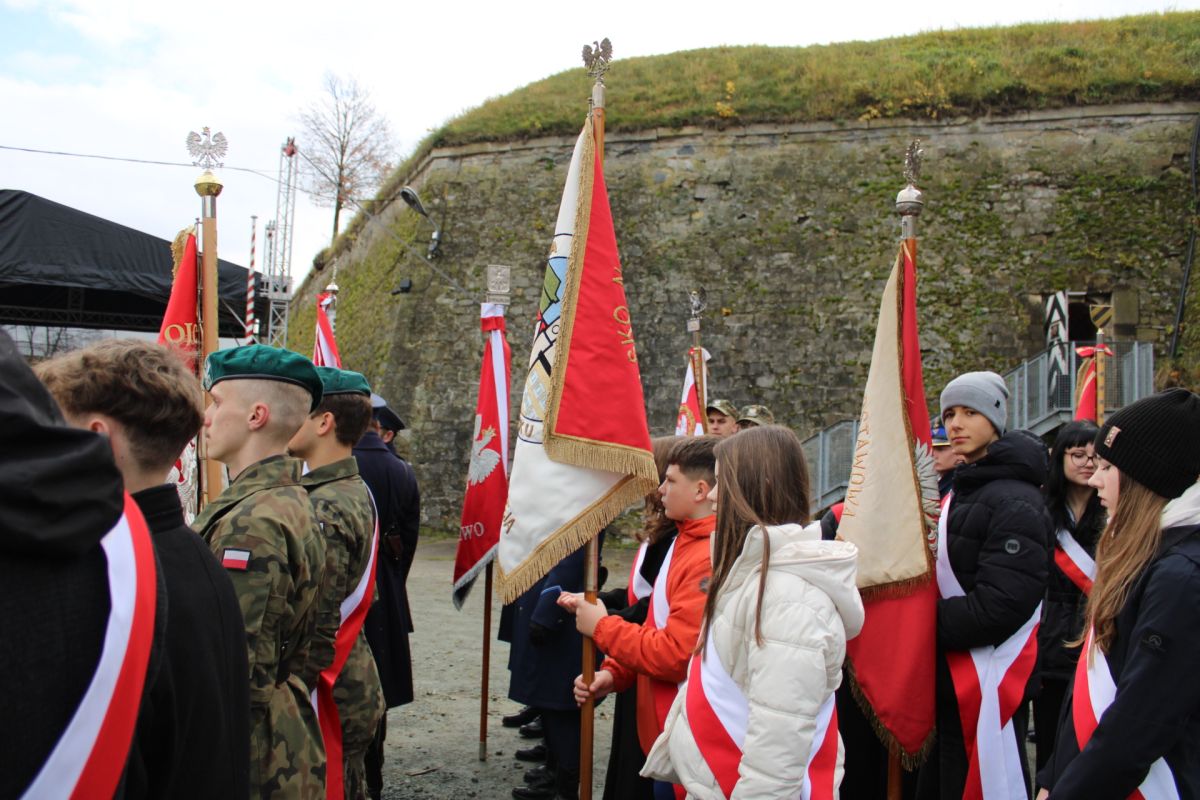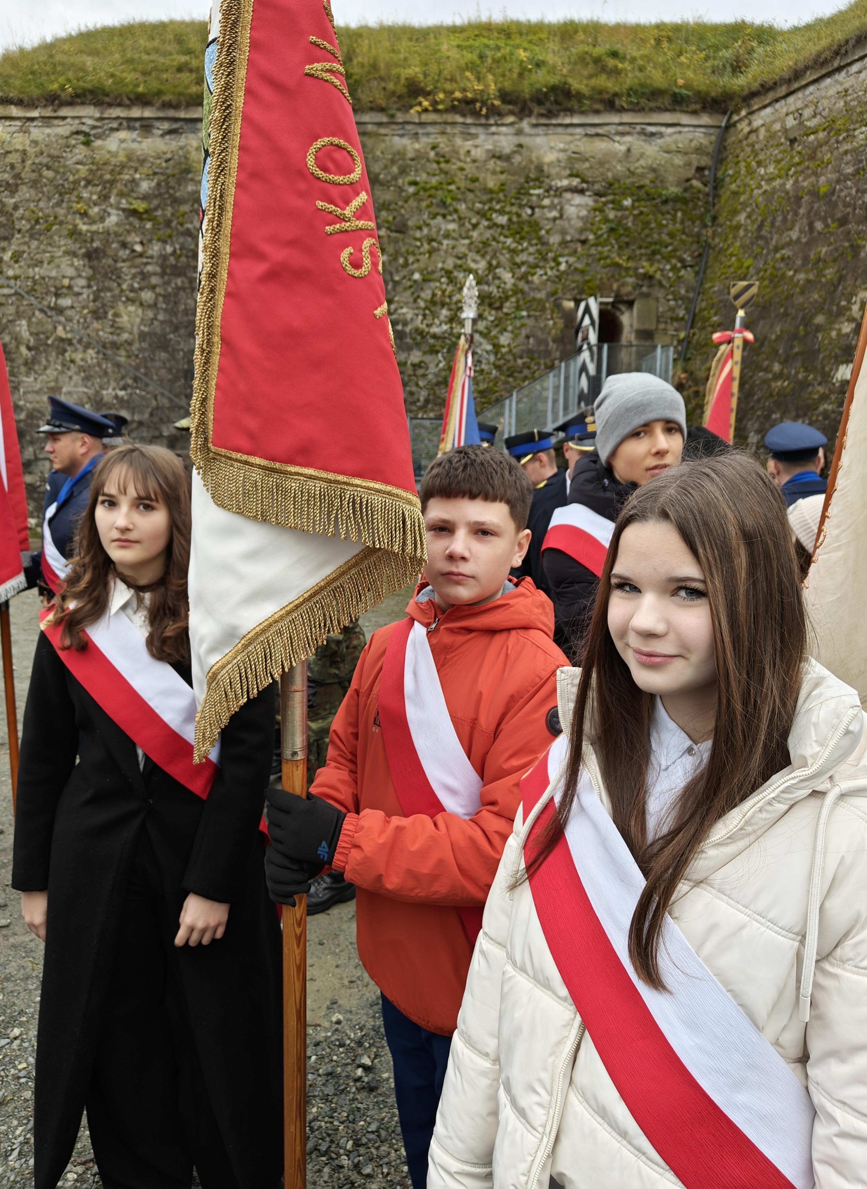 Nasz poczet sztandarowy obecny na Powiatowych i Miejskich Obchodach Narodowego Święta Niepodległości. Podczas uroczystości zorganizowanej na Twierdzy Kłodzkiej szkołę dumnie i wytrwale reprezentowali: