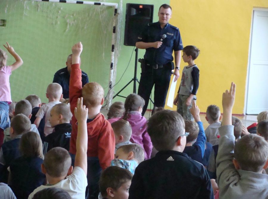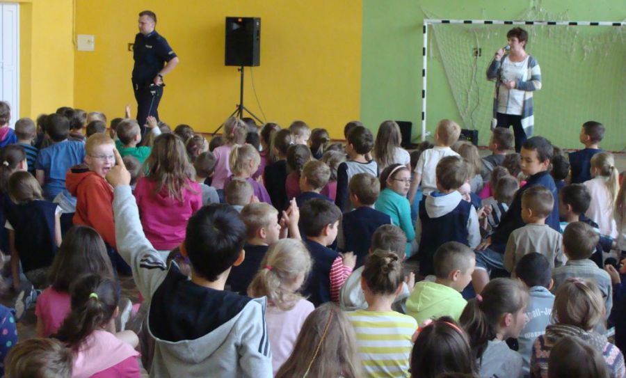 Uczniowie mieli okazję spotkać się z przedstawicielami Policji, którzy w formie zabawy tłumaczyli naszym podopiecznym w jaki sposób mają spędzać czas wolny aby uniknąć wszelkich niebezpieczeństw.