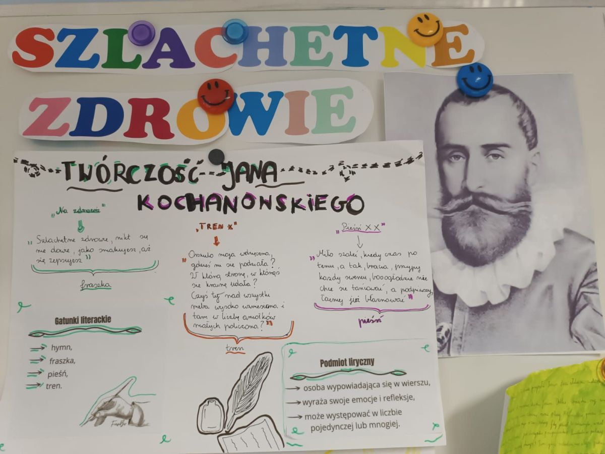 Zaangażowanie uczniów, wspólne czytanie, piękne prace plastyczne i multimedialne oraz prelekcje o zdrowiu, ukazały piękno, znaczenie i ponadczasowe wartości zawarte w twórczości Jana Kochanowskiego!