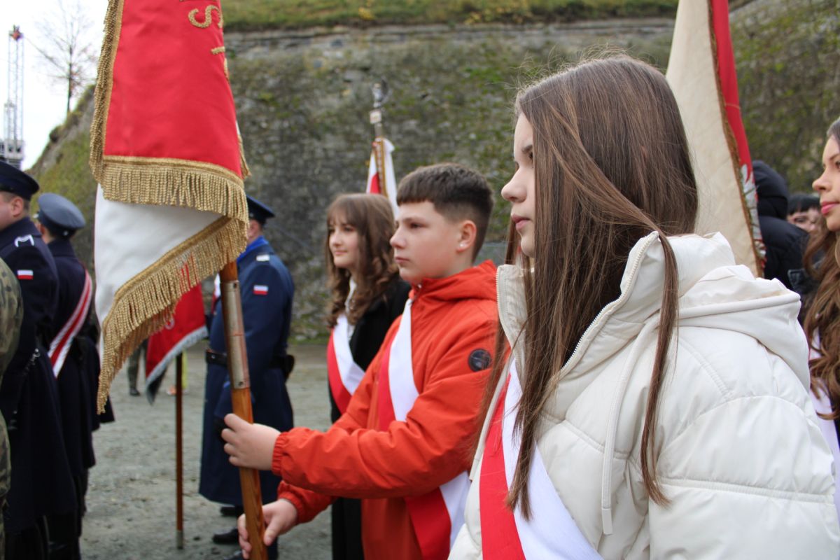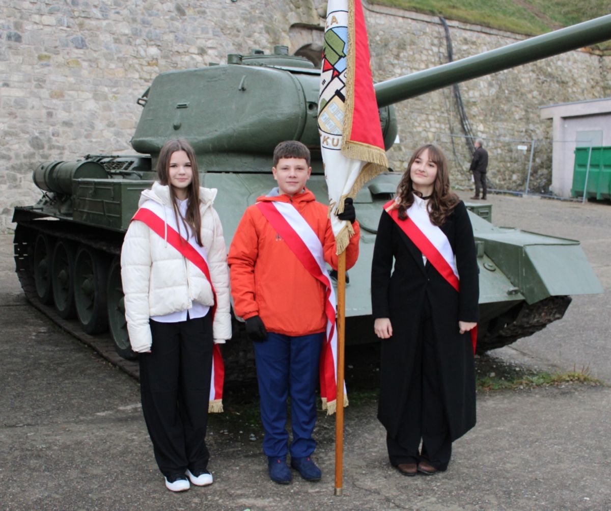 Nasz poczet sztandarowy obecny na Powiatowych i Miejskich Obchodach Narodowego Święta Niepodległości. Podczas uroczystości zorganizowanej na Twierdzy Kłodzkiej szkołę dumnie i wytrwale reprezentowali: