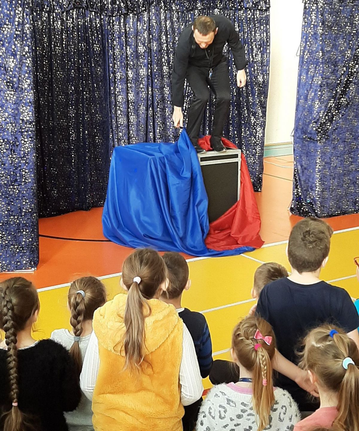 Dziś w naszej szkole wystąpił "Teatr Iluzji Aleksandra Tkacza" z Kołobrzegu. Wszyscy nasi uczniowie obejrzeli spektakl magii poprzez zabawne sztuczki i pokaz umiejętności iluzjonistycznych. Towarzyszył temu ogromny entuzjazm uczniów, szczególnie w chwili zaproszenia na scenę ucznia w charakterze asystenta, co wzbudziło pozytywne, pełne napięcia emocje. To niezwykłe, niecodzienne doświadczenie i pokaz zaskakującej sztuki iluzji, było dla dzieci znakomitą okazją do wystawienia zmysłów na próbę, aby wpłynąć na rozwój wyobraźni i kreatywnego myślenia. Ta nietypowa lekcja bardzo nam się podobała. Dziękujemy.