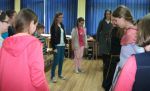 7 czerwca br., uczniowie uczestniczyli w wyjątkowej lekcji historii, której autorami byli członkowie Kłodzkiego Bractwa Rycerskiego. Biblioteka gościła bowiem komesa Bractwa, panią Marię Biłas oraz damy i rycerzy: Dominikę Zdębę, Natalię Maślankę, Macieja Dygonia, Macieja Maciejewskiego i Łukasza Wasilewskiego. Skupieni wraz z innymi w Kłodzkim Bractwie Rycerskim, pasjonują się okresem późnego średniowiecza, szczególnie tematyką mieszczaństwa i rycerstwa terenów Śląska i Czech. Ta odległa epoka oprócz swoich cieni, to także w dziejach Kłodzka, czas niezwykłego rozkwitu architektury, rzemiosła i sztuki, a także kultury dworskiej ideałów rycerskich. Członkowie Bractwa rekonstruują fragmenty obyczajowości wieków średnich, nadając im realny kształt. Opowiadają o odwadze, męstwie, szlachetności rycerzy i dostojeństwie dam.. Prezentowane przez nich ubiory, przedmioty codziennego użytku, ozdoby, fryzury, a także zbroje i pokaz walk oraz tańców, zrobiły ogromne wrażenie na uczestnikach spotkania i na pewno na długo pozostaną w pamięci. To dzięki fascynacji naszych gości miastem i jego historią, ożyła ona na naszych oczach i na chwilę zachwyciła swoją urodą, wdziękiem i pięknem minionych wieków.