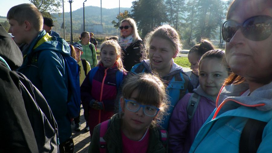 O godz. 9.30 spotkaliśmy się na głównym parkingu w centrum Szczytnej. Niestety grupa uczniów z jednej z wrocławskich szkół podstawowych przyjechał na miejsce zbiórki z ponadpółgodzinnym opóźnieniem, więc czekaliśmy i czekaliśmy, ale w końcu wyruszyliśmy ze Szczytnej w kierunku Bobrownik i dalej przez Piękny Widok, Muflon i Duszniki Zdrój do Jamrozowej Polany. Tym razem planowaliśmy przejść 16 km (no, może 17). Na szlaku czekały na wszystkich liczne atrakcje: tradycyjna już gra terenowa pod nazwą: Łańcuszek Św. Andrzeja (przygotowane przez Klub Ekologiczny ze Szkoły Społecznej w Kłodzku), ognisko, kiełbaski, ciepła zupa, herbata i kawa, wspólne śpiewanie turystycznych piosenek. Każdy zapisany uczestnik rajdu otrzyma specjalnie na tę okazję przygotowany znaczek rajdowy, certyfikat rajdowy, zawieszkę odblaskową, śpiewniczek rajdowy i ekologiczny kalendarz ścienny na 2018 rok ze zdjęciami Krzysztofa i Jana Sapiehów. Pogoda była idealna, prawdziwa Złota Polska Jesień, plus 20 stopni Celsjusza, lekki wiaterek, prawie żadnej chmurki na niebie, nic więc dziwnego, że szło się znakomicie i prawie wszystkim dopisywały znakomite humory.